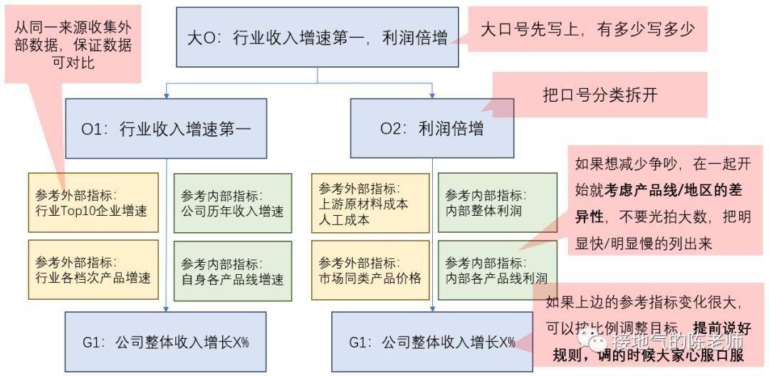 这样,如果真的明年大环境更差,那么目标可以合理降低;如果大环境变好,那么目标可以合理提升。不用每次都哭爹喊娘打嘴仗,极大提升效率。