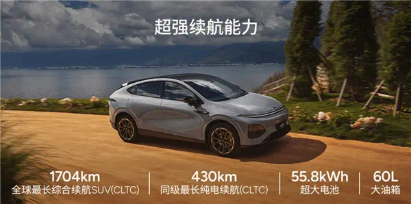 1、1704km全球最长综合续航,430km同级最长纯电续航;