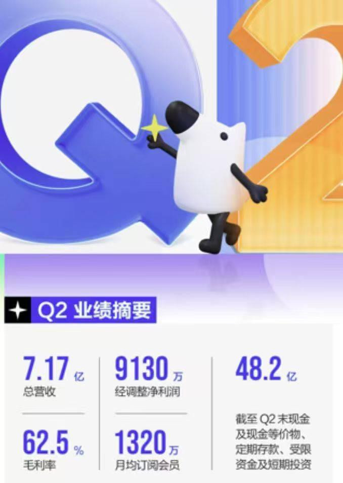 运营层面,第二季度的月活跃用户规模与同期基本持平,不过,日活用户使用时长、核心用户留存环比、同比提升。此外,第二季度月均订阅会员数继续保持行业领先,达到1320万。日均新增高质量内容环比提升超过10%,其中AI相关专业内容连续两个季度保持同比45%以上的增长。